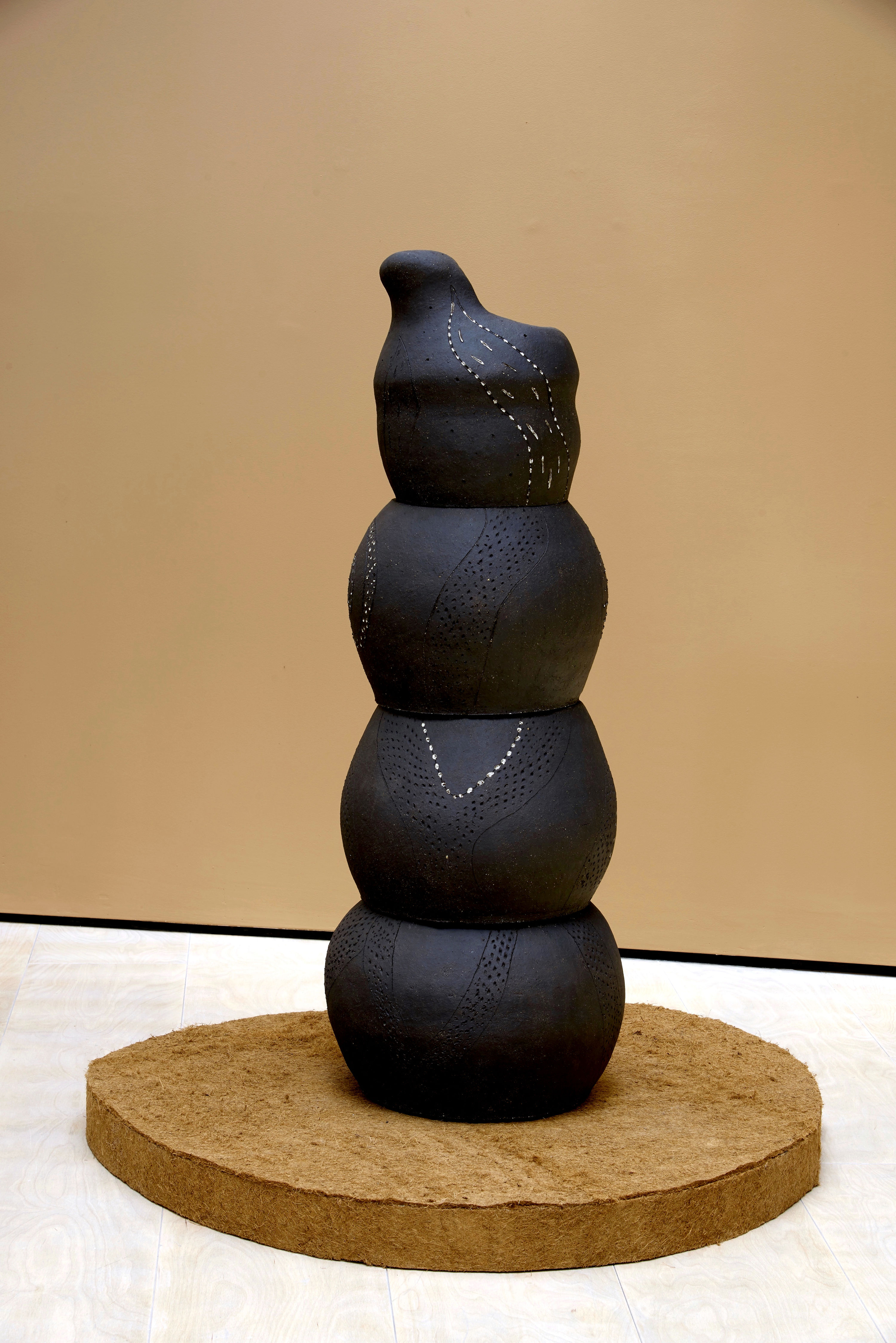 Lucía PizzaniFlora Totem Eucalipto, 2023Black stoneware clay and slip104 x 35 x 35 cm