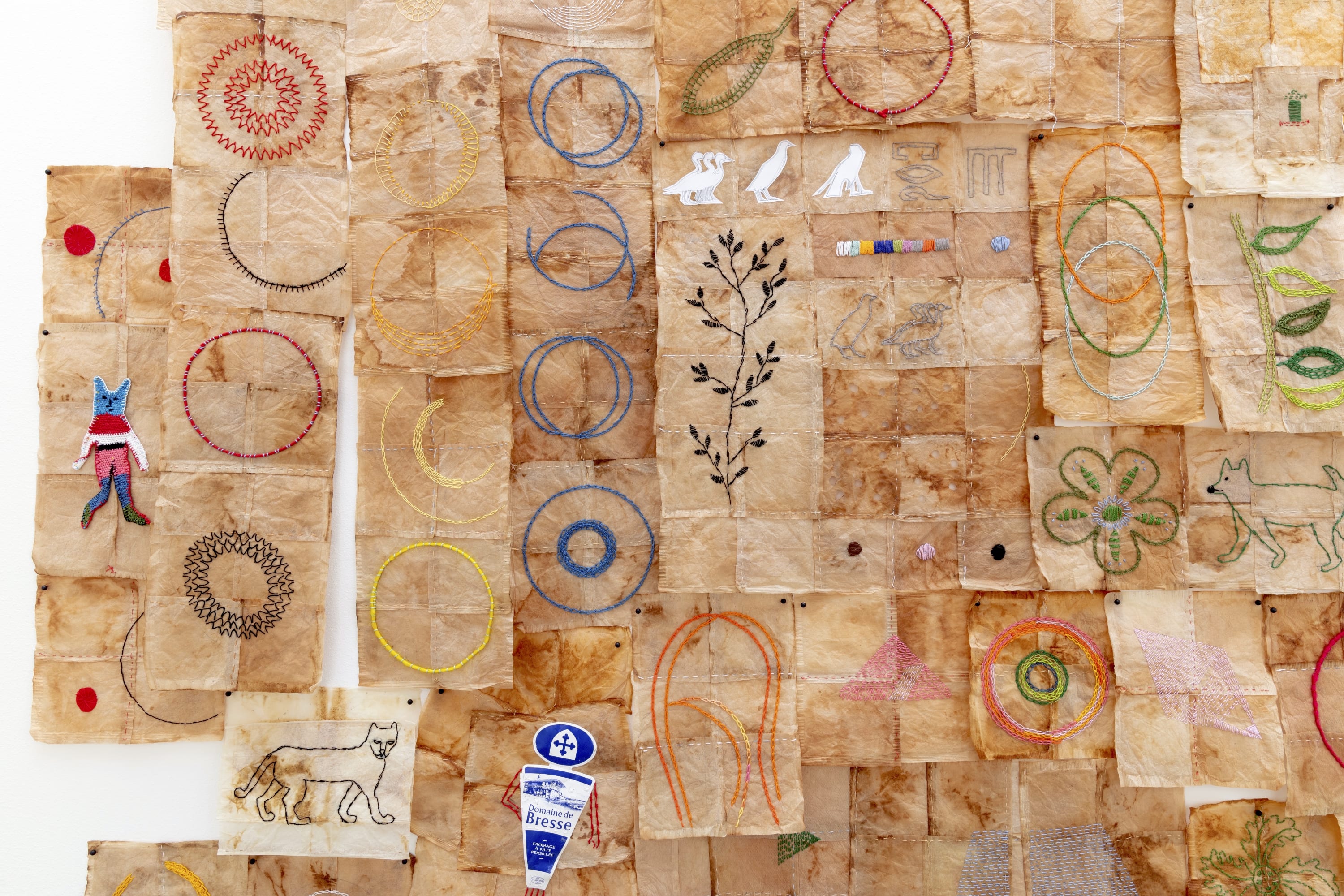 Detail: Eliza Kentridge, Untitled, embroidery installation, 175 x 372 cm (68 7/8 x 146 1/2 in) (dimensions variable) -