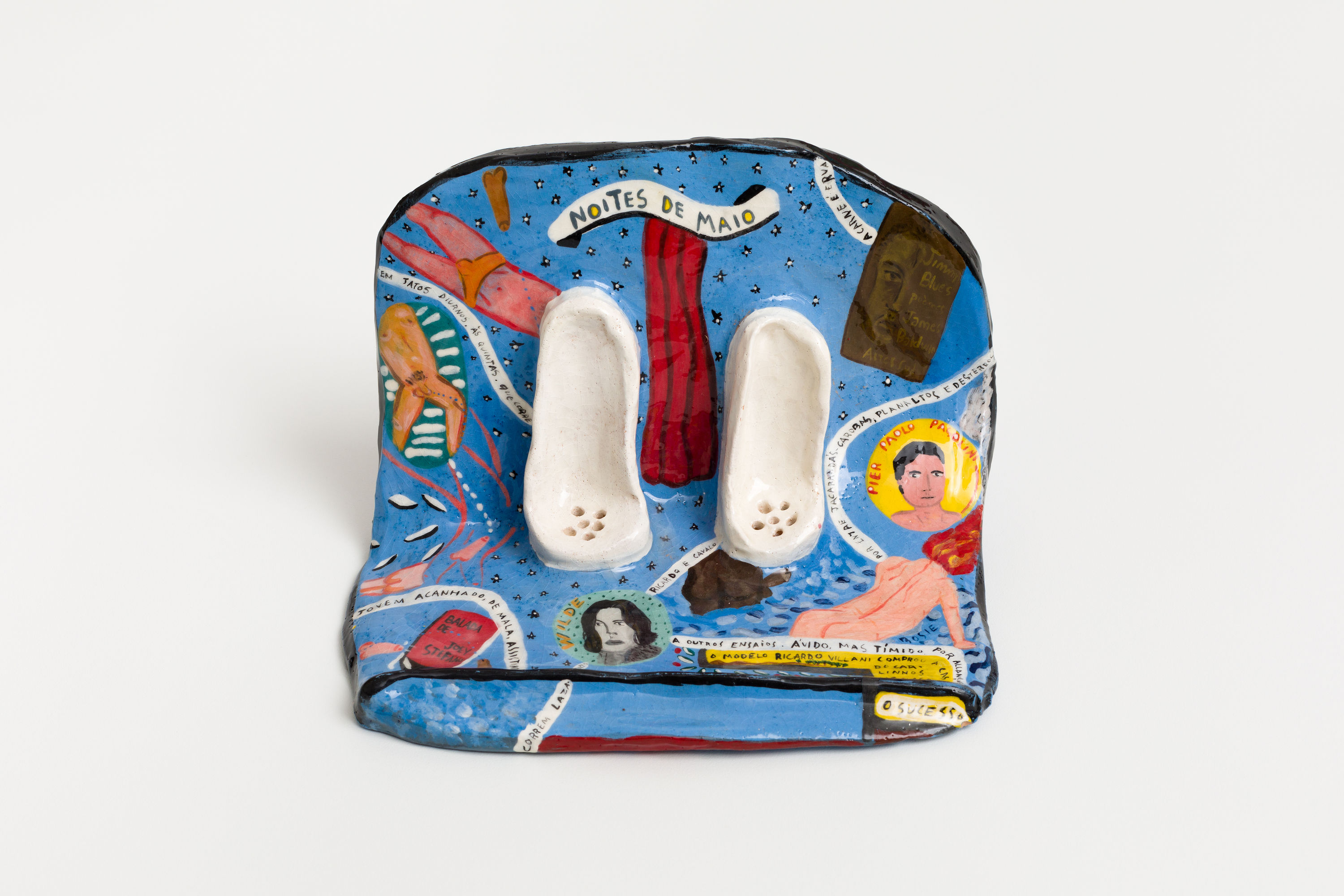 Works by Brazilian artist Matheus Chiaratti function as an emotional cartography – a way of sorting out the world from a restless and deeply curious perspective. Throughout Chiaratti’s practice, his maternal grandmother’s gardens are restored as a territory of desire, memory and theatricality. Nature emerges as a scenery of abundance, a romantic monument to the most primal feelings.Across textile, ceramics, painting and photographic collage, the investigation of words and their poetic capacity is a central theme in Chiaratti’s production. Through evocative images of nature, art historical reference and a mapping of images and thoughts, he arranges his universe as a visual diary, a sketchbook: a world that is mythical and banal, intimate and sacred.